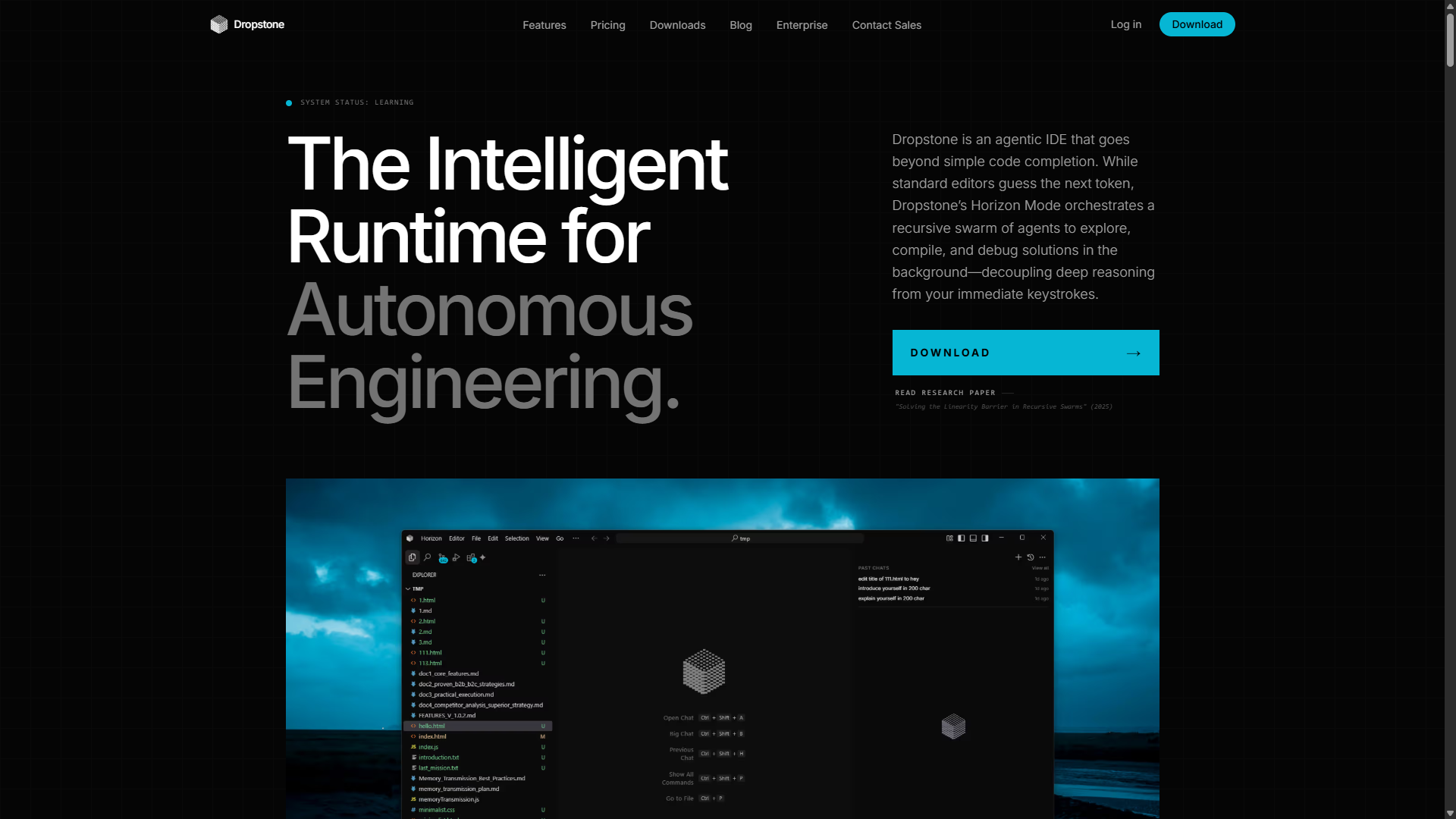 Dropstone is an agentic IDE that goes beyond simple code completion. While standard editors guess the next token, Dropstone’s Horizon Mode orchestrates a recursive swarm of agents to explore, compile, and debug solutions in the background—decoupling deep reasoning from your immediate keystrokes.