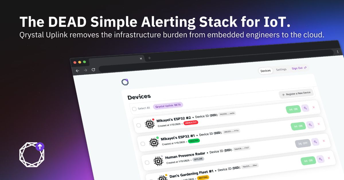 Qrystal Uplink targets IoT developers and organizations managing embedded device fleets who want to monitor device health without building custom monitoring infrastructure. The platform is designed for those using ESP32 and other embedded boards who need reliable monitoring solutions with minimal setup overhead.